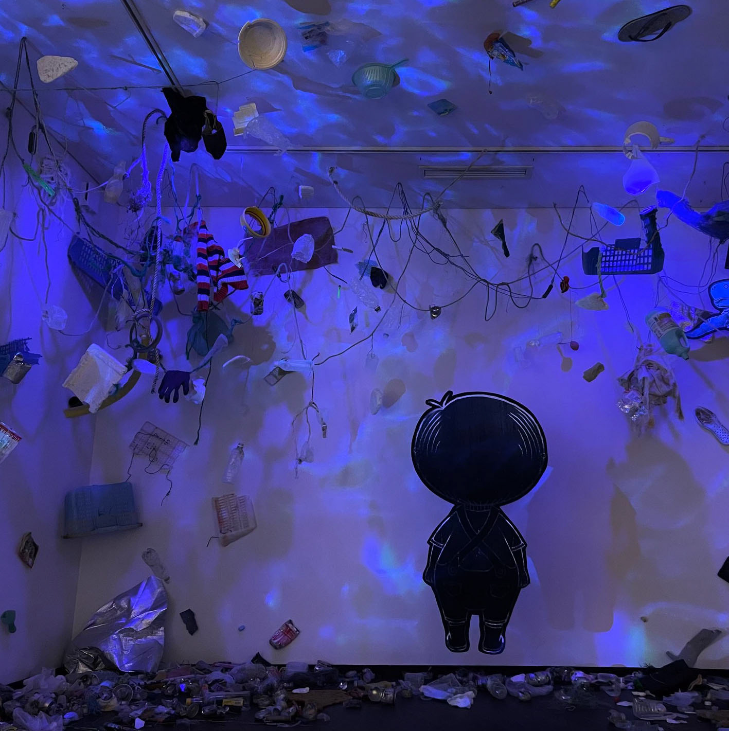 舞台にした本展では、海岸清掃で集められた海のごみを利用し、